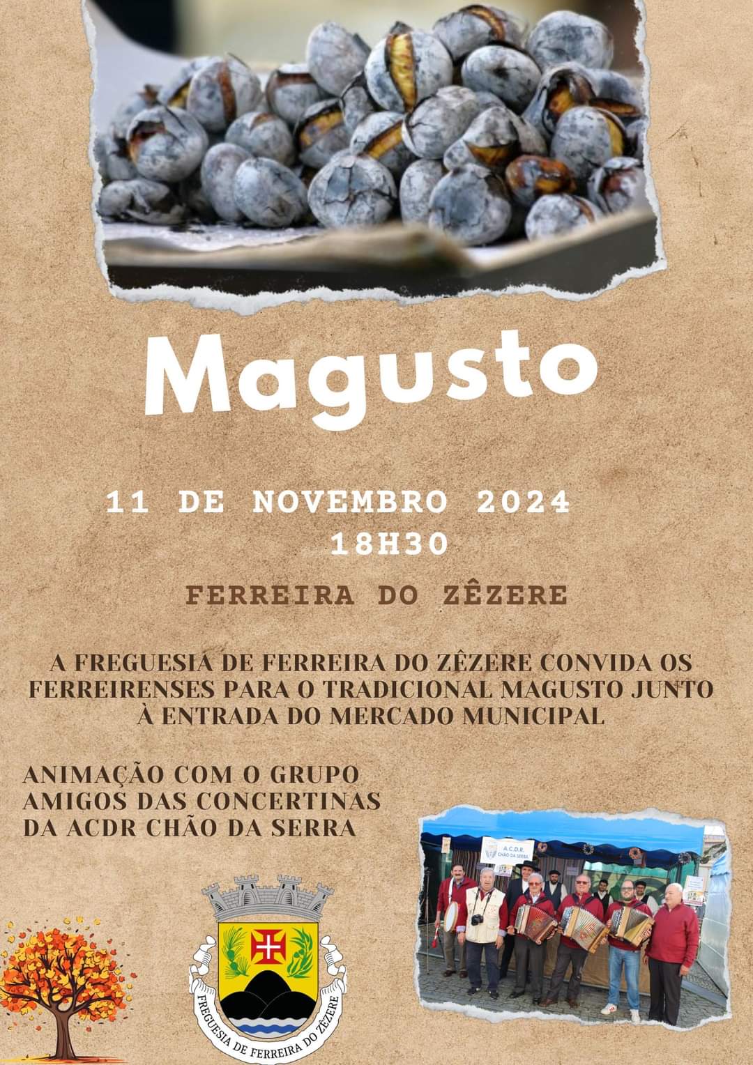 A Junta de Freguesia de Ferreira do Zêzere promoveu no dia 11 de novembro, Dia de São Martinho, junto à entrada do Mercado Municipal, o tradicional Magusto para os Ferreirenses.
