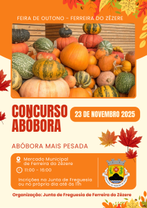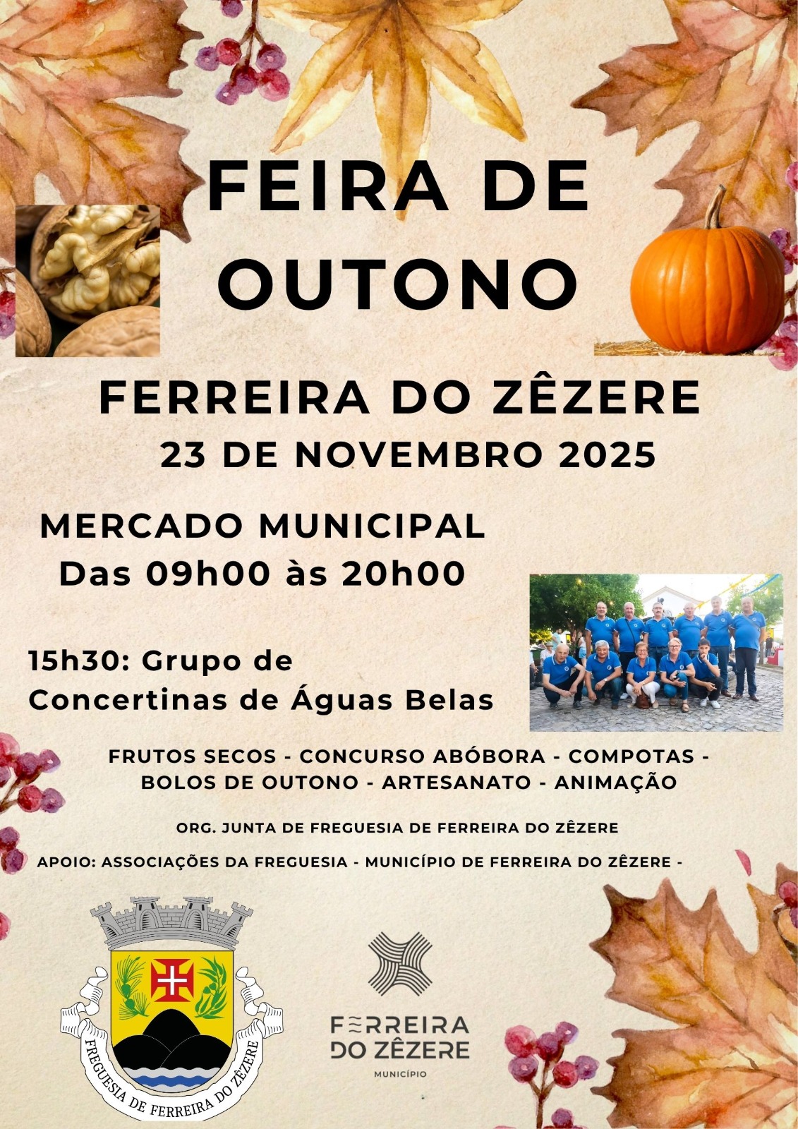 A Freguesia de Ferreira do Zêzere convida toda a população a participar em mais uma edição da Feira de Outono, que terá lugar no próximo dia 23 de novembro, no Mercado Municipal, entre as 9h00 e as 18h00.